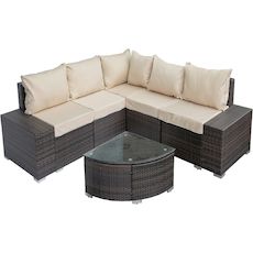 Salon de jardin en résine tressée Zelda - 5 places - Marron