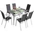 Salon de jardin en textilène Cordoba - 1 table + 6 fauteuils - 150 x 90 x 72 cm - Couleur: Gris foncé/Argenté.