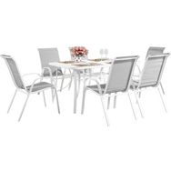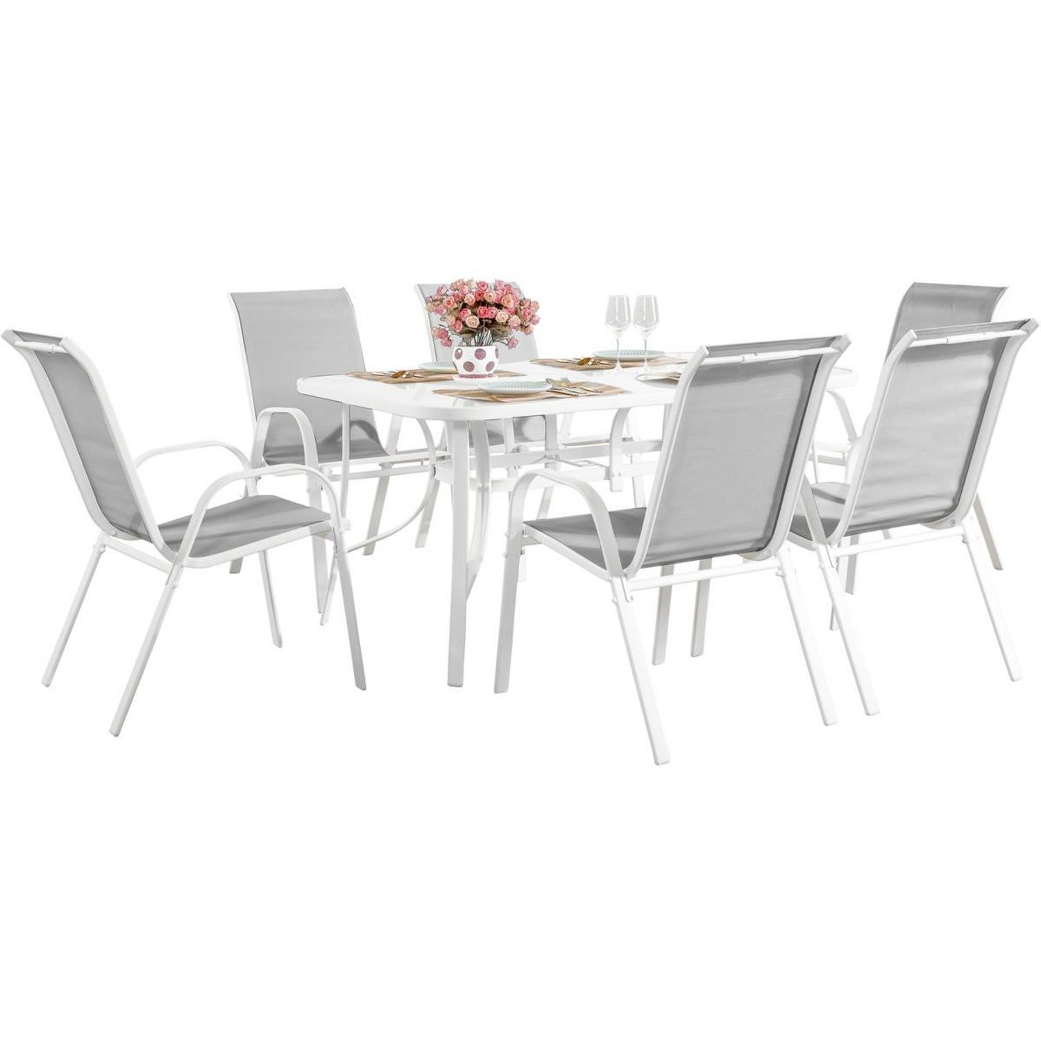 Salon de jardin en textilène Cordoba - 1 table + 6 fauteuils - 150 x 90 x 72 cm - Couleur: Gris/Blanc.