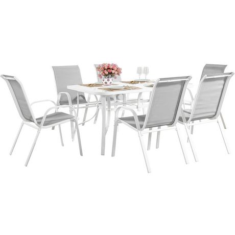 : Salon repas de jardin, structure en acier et assise en textilène - Idéal pour recevoir vos proches et vos amis autour d'un repas.