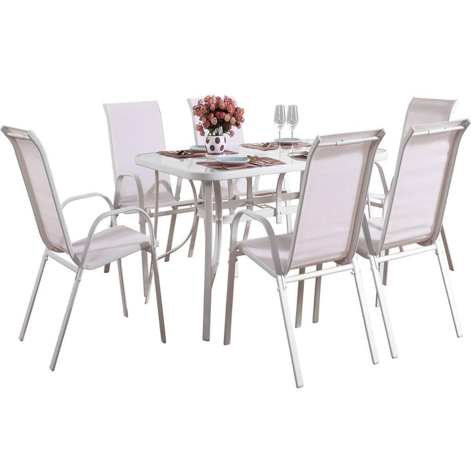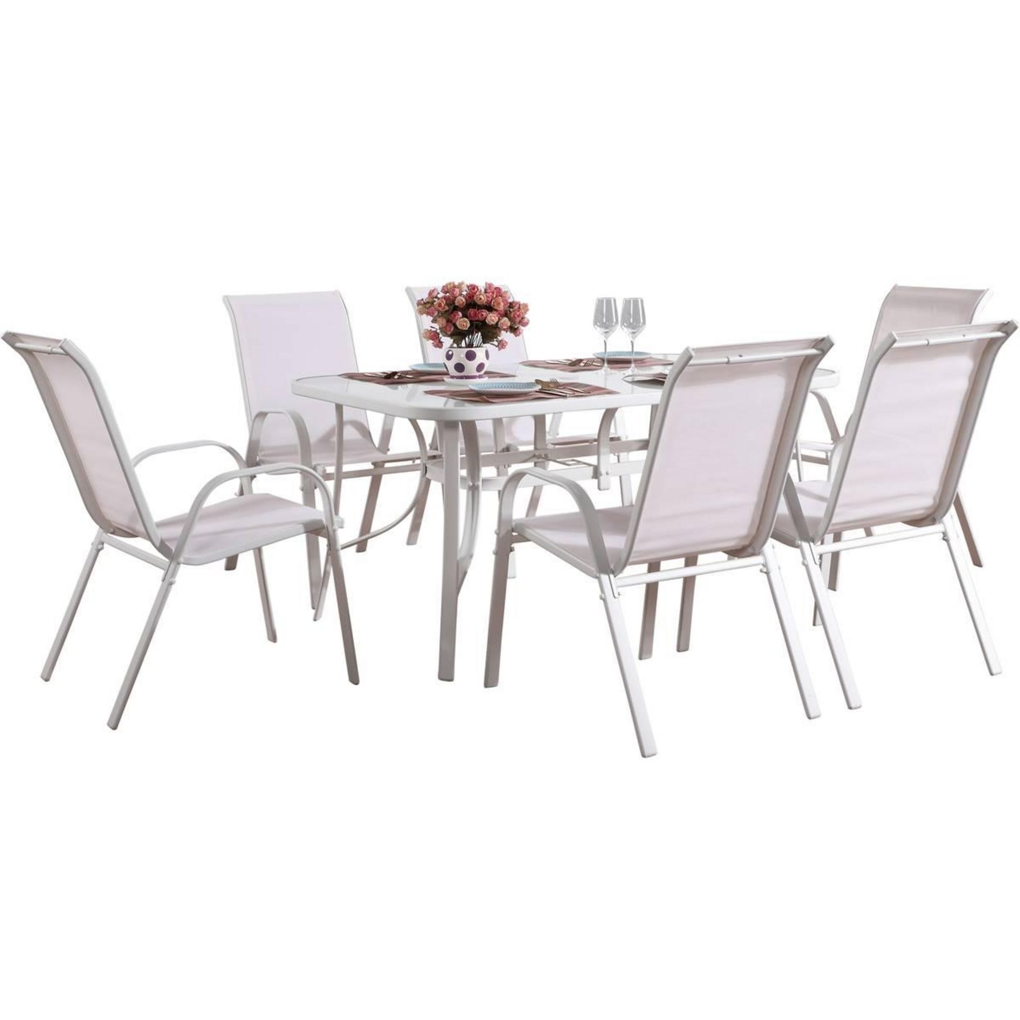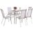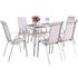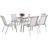 Salon de jardin en textilène Cordoba - 1 table + 6 fauteuils - 150 x 90 x 72 cm - Couleur: Ecru/Blanc.