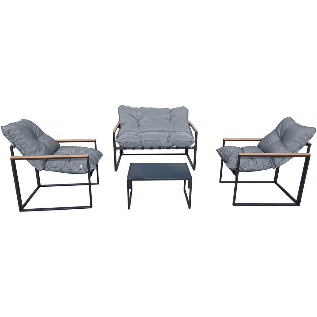 Ensemble de salon de jardin Jules - 4 places - Dimension du canapé : 114 x 70 x 67 cm - Dimension chaise : 70 x 57 x 67 cm - Dimension de la table : 65 x 42 x 35 cm - Epaisseur du verre : 4.5 mm - Hauteur d'assise : 35.5 cm - Métal - Gris/Noir.Salon de jardin Jules - 4 places - Gris/Noir App
