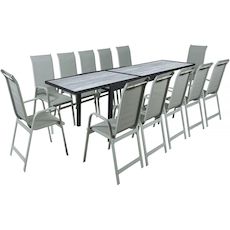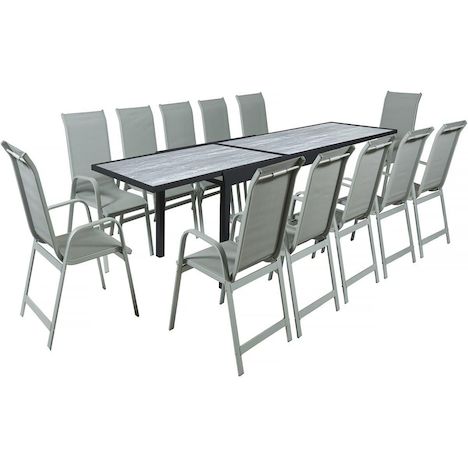 Salon de jardin Lagos - 200/320 x 105 x 76 cm - Taupe - 12 places