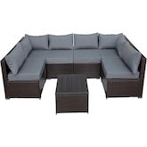 Salon de jardin panoramique en résine tressée Océane - 6 places - Marron