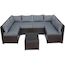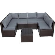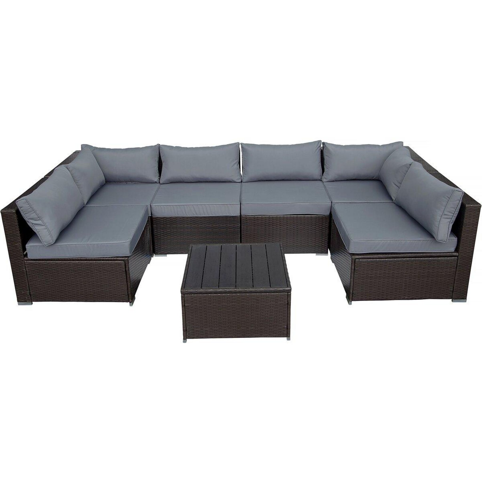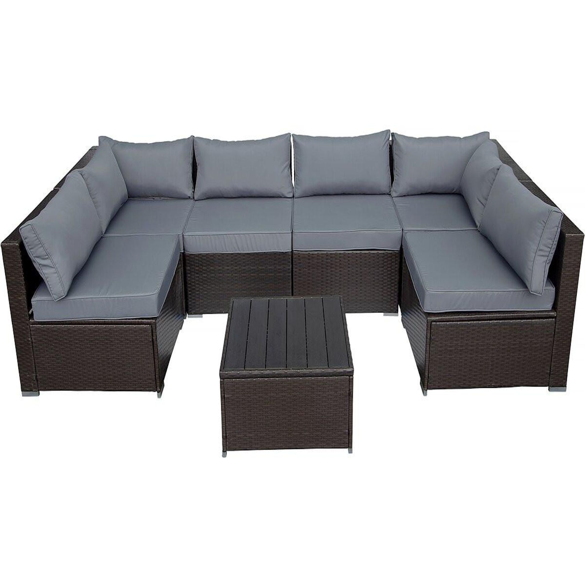 Canapé panoramique de jardin Océane - 6 places - Dimensions du canapé : 296 x 148 x 70 cm - Dimensions de la table : 63 x 63 x 37 cm - Résine tressée - Marron.