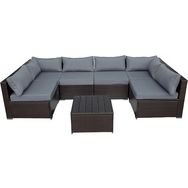 À la fois moderne, spacieux et accueillant, le salon d'extérieur Océane a été conçu pour faire de votre jardin ou terrasse un véritable lieu de vie, propice à la détente et au partage. Idéal pour accueillir jusqu'à 6 personnes, il se prête aussi bien aux instants conviviaux en famille qu'aux moments de détente entre amis, autour d'un café, d'un apéritif ou simplement pour profiter d'un rayon de soleil. L'ensemble se compose d'un canapé aux dimensions généreuses,296 x 148 x 70 cm, offrant une assise à la fois spacieuse et confortable, ainsi que d'une table basse carrée, 63 x 63 x 37 cm, parfaite pour accueillir verres, livres ou objets déco. Conçu en résine tressée marron, un matériau aussi élégant que résistant, le salon Océane est parfaitement adapté à une utilisation extérieure et s'adapte a tous les styles d'aménagement. À la fois esthétique et confortable, le salon Océane transforme votre extérieur en un espace chaleureux et convivial, parfait pour savourer chaque instant sous le ciel bleu. Descriptif : Salon d'extérieur Océane - 6 places - Dimensions du canapé : 296 x 148 x 70 cm - Dimensions de la table : 63 x 63 x 37 cm - Poids maximum supporté : 160 kg - Résine tressée - Marron.