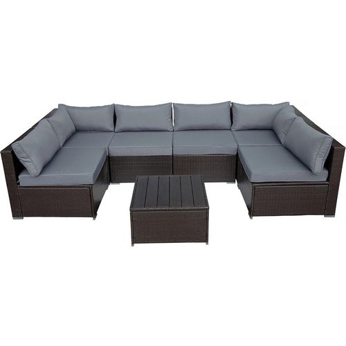 Salon de jardin en résine tressée Océane - 6 places - Marron