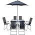 Salon de jardin repas avec parasol en métal Convivia - 6 places - Gris anthracite