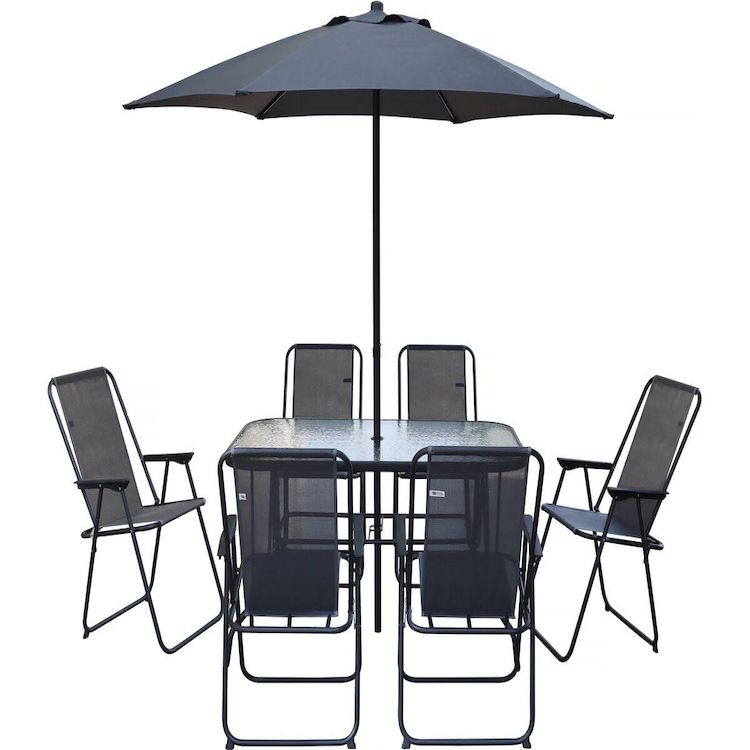 le + produit: Ensemble complet 6 places avec parasol inclus