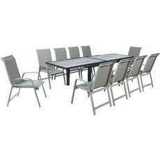Salon de jardin en aluminium extensible Lagos - 140/280 x 90 x 76 cm - 10 places - Gris clair