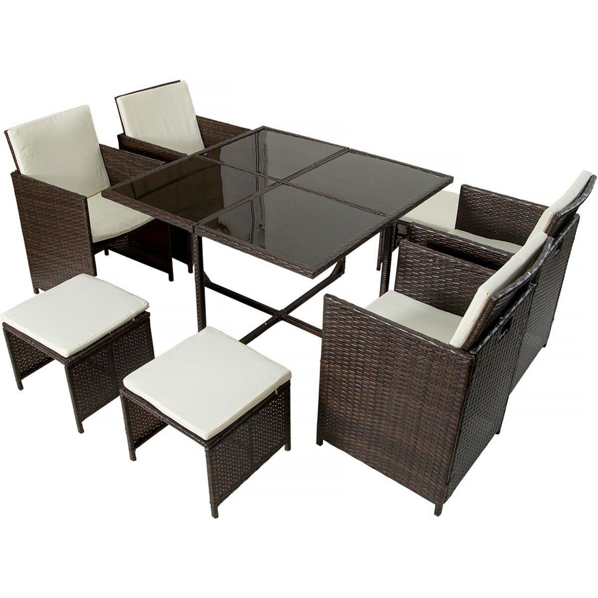 Salon de jardin en résine tressée 6 places Nunez - Structure marron et coussins blancs - 4 chaises - 2 tabourets - 1 table. Salon de jardin Nunez - résine tressée - Marron / Blanc - 6 places Découvrez le salon de jardin Nunez qui apportera une touche d'élégance à votre espace extérieur. Com