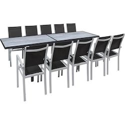 Salon de jardin repas extensible Lagos - Table extensible 200/320 x 105 x 76 cm - 10 chaises - Noir