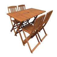 Salon de jardin en bois exotique - 1 table + 4 chaises pliantes - Anti UV et résistant à l'eau (Traitement Teck Oil) - Entretien facile et rapide - Marron clair.