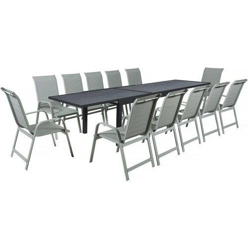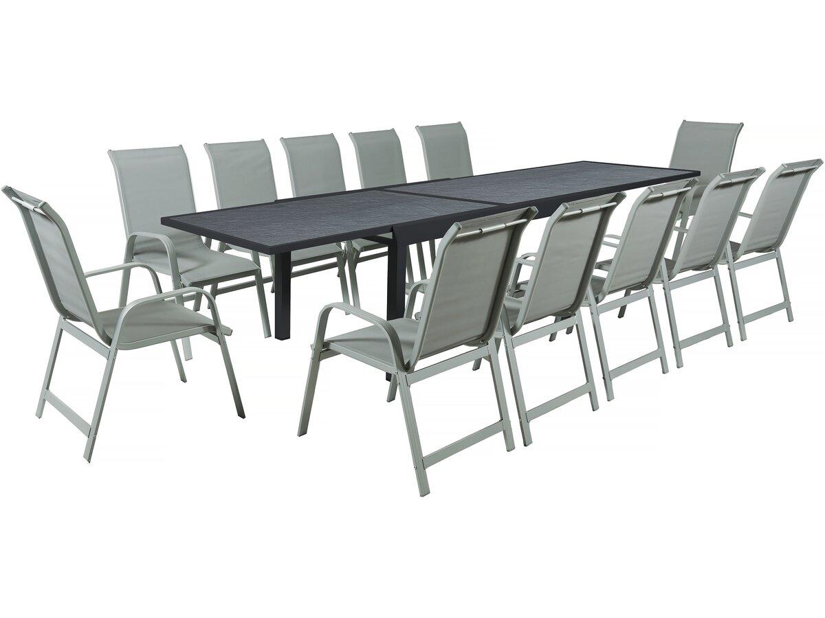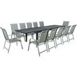 Salon de jardin repas Lagos - 200/320 x 105 x 76 cm - 12 chaises - Gris clair