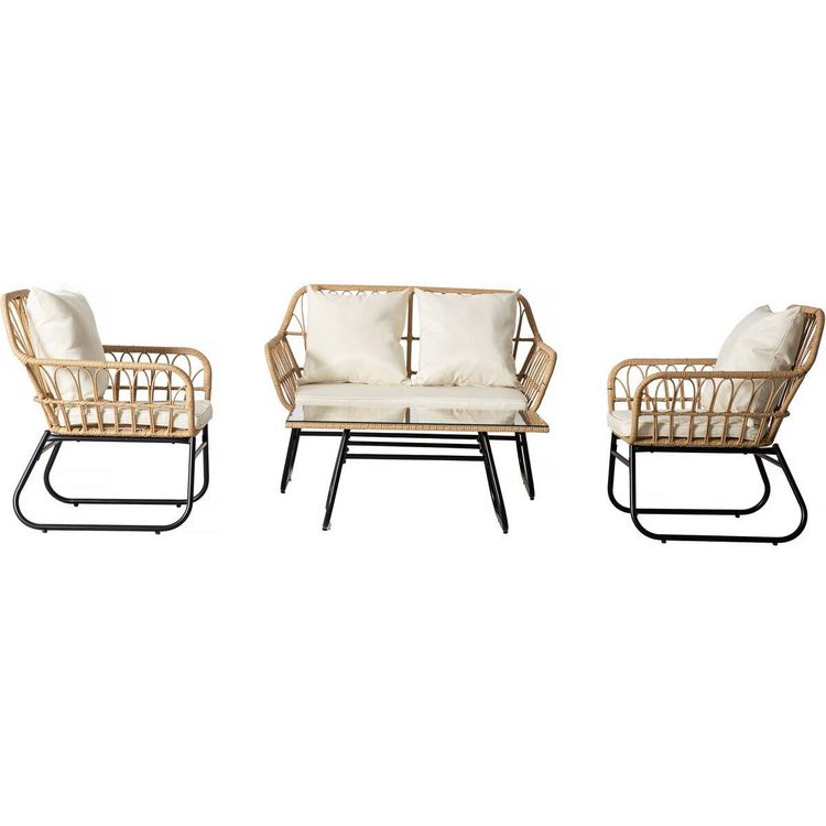 Salon de jardin rotin Melo - 4 places - Blanc/Marron :