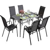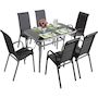 Salon de jardin en textilène Cordoba + Porto 6 places - Table acier/plateau verre 150x90x72cm - 6 sièges textilène gris foncé/structure argent 75.5x55.5x99cm - Sièges non empilables .Caractéristique couleur: Salon repas de jardin, structure en acier et assise en textilène - Idéal pour recevoir vos proches et vos amis autour d'un repas.