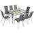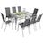 Salon de jardin en textilène Cordoba + Porto 8 places - Table acier/plateau verre 180x90x72cm - 8 sièges textilène gris clair/structure argent 75.5x55.5x99cm - Sièges non empilables.Salon de jardin en textilène Cordoba + Porto 8 places - Table acier/plateau verre 180x90x72cm - 8 sièges textilène