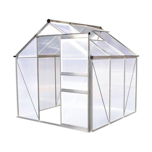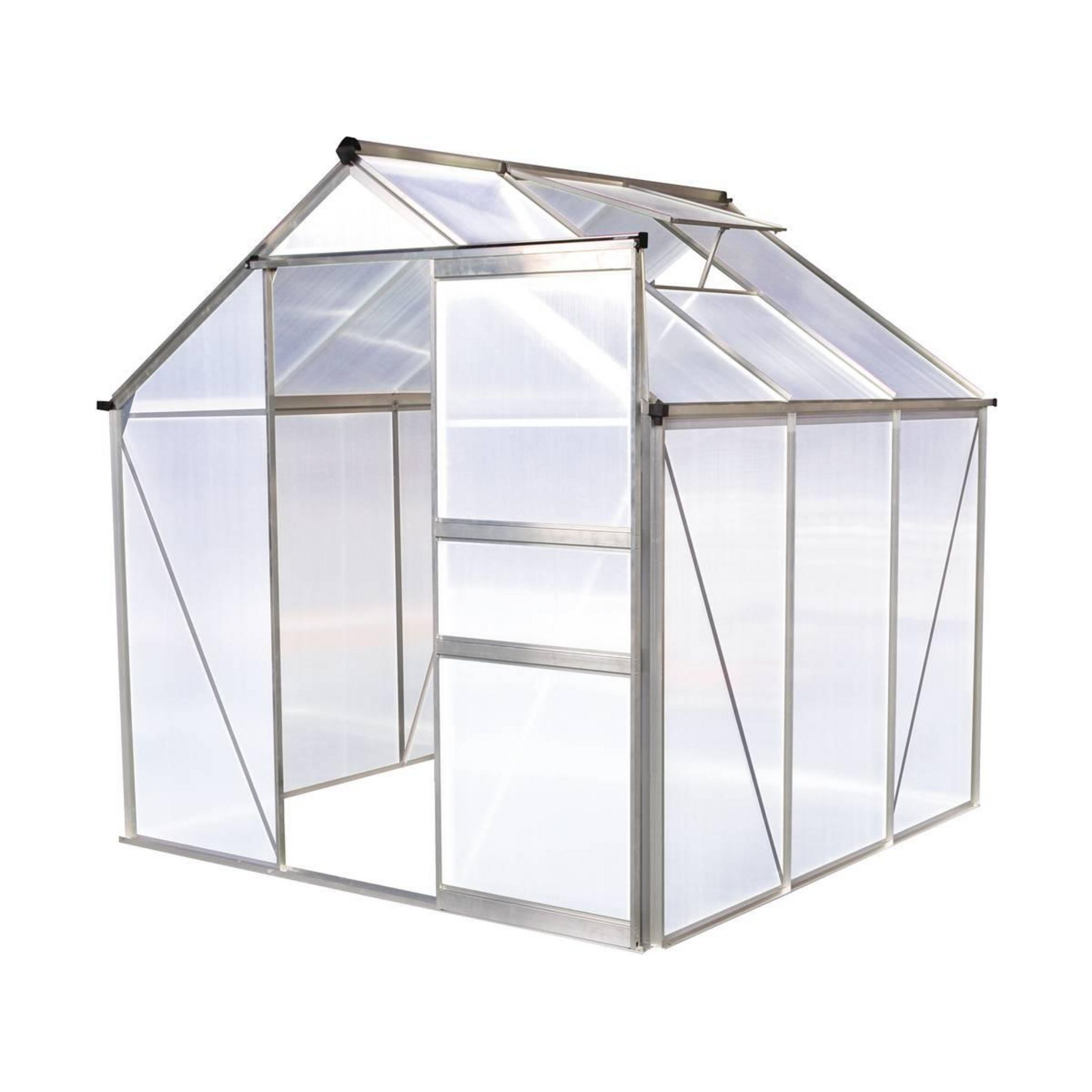 Serre de jardin polycarbonate Hortensia de couleur transparente - Structure haute qualité en aluminium - Dimensions hors tout : 190(l)x192(L)x193(H)cm - Façade de panneaux doubles 4mm - Une porte simple et une lucarne - (embase métallique non inclue).