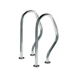 Sorties de bain pour piscine avec jeu de 2 mains courantes - Dimensions : 47 x 80 cm - Matière : acier inoxydable AISI-316 poli - Rectangulaires à visser.
