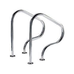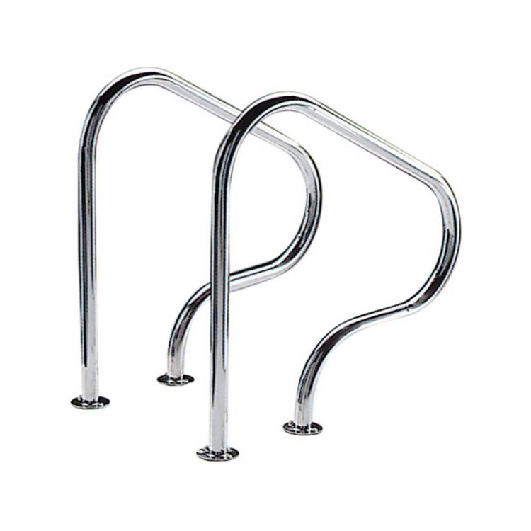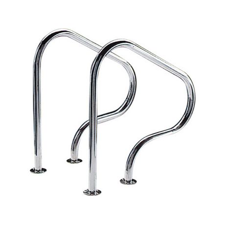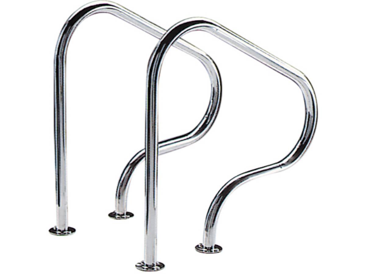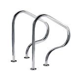 Sorties de bain pour piscine avec 2 mains courantes - Dimensions : 80 x 80 cm - Matière : acier inoxydable AISI-316 poli - A visser (joints, chevilles, tire-fonds).