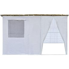 Souccah en Kit NINA ajustable - 3 x 5 x 2.1 m - Dimensions extérieures 3 x 5 m - Tissu Oxford blanc - avec Tasseau de bois Soucca de 3.2 m de section 4 x 4 cm - 3 Rouleau de canisse en bambou fendu (Deux rouleaux de 1.10 x 3.10 m et deux rouleaux de 1.6 x 3.1 m).