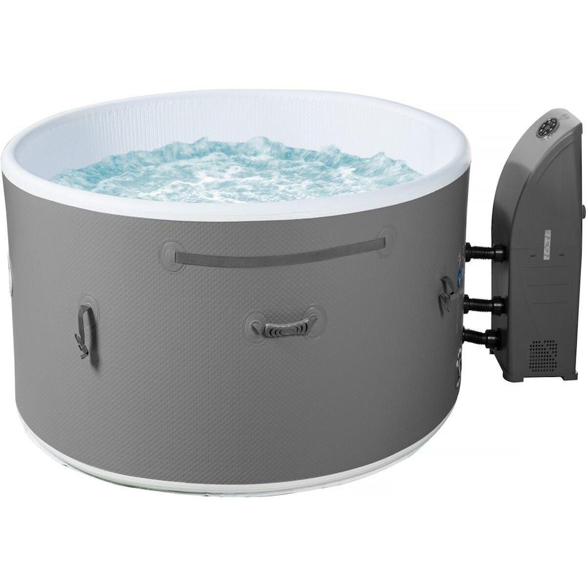 Spa dropstitch Venise - Dimensions: 165 cm de diamètre et 65 cm d'hauteur - Système de chauffage : 20 à 40 °C - 130 jets d'eau - Matière : PVC - Poids : 26.2 kg - Blanc/Gris.Spa en PVC Venise - 5 places - Blanc/GrisTransformez votre espace en un havre de détente avec le spa Venise , conçu