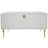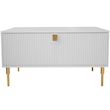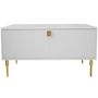 Table basse Dorset - Rectangulaire - 120 x 51 x 55 cm - 2 rangements - Pieds en métal doré : 20 cm - Ouverture des portes grâce à un vérin hydraulique.