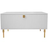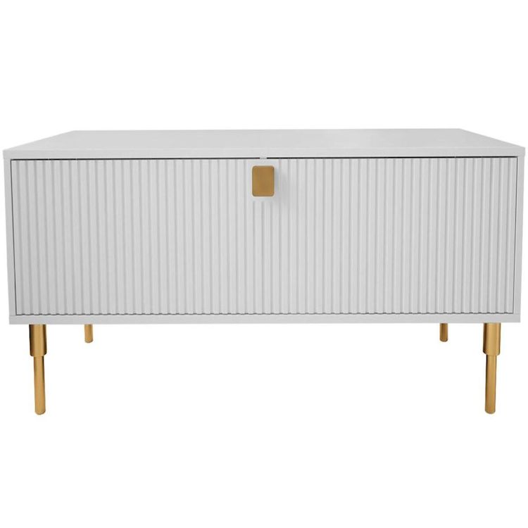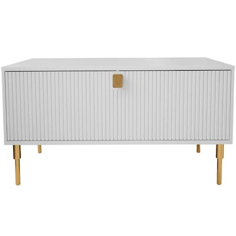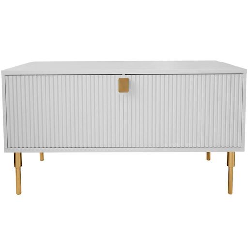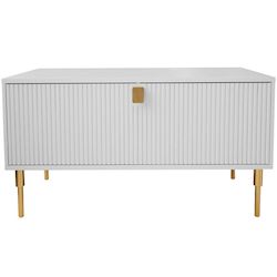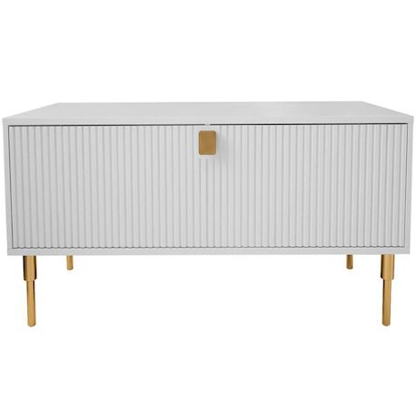 Table basse Dorset - Rectangulaire - 120 x 51 x 55 cm - 2 rangements - Pieds en métal doré : 20 cm - Ouverture des portes grâce à un vérin hydraulique.Table basse Dorset - 120 x 51 x 55 cm - BlancheLa table basse Dorset est l'addition parfaite à votre salon moderne. Mesurant 120 x 51 x 55 cm,