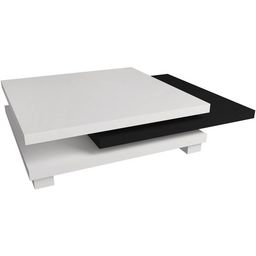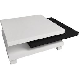 Table basse Elena transformable - Dimensions : 80 x 80 x 32 cm - Blanc / Noir brillant - Plateaux pivotants.
