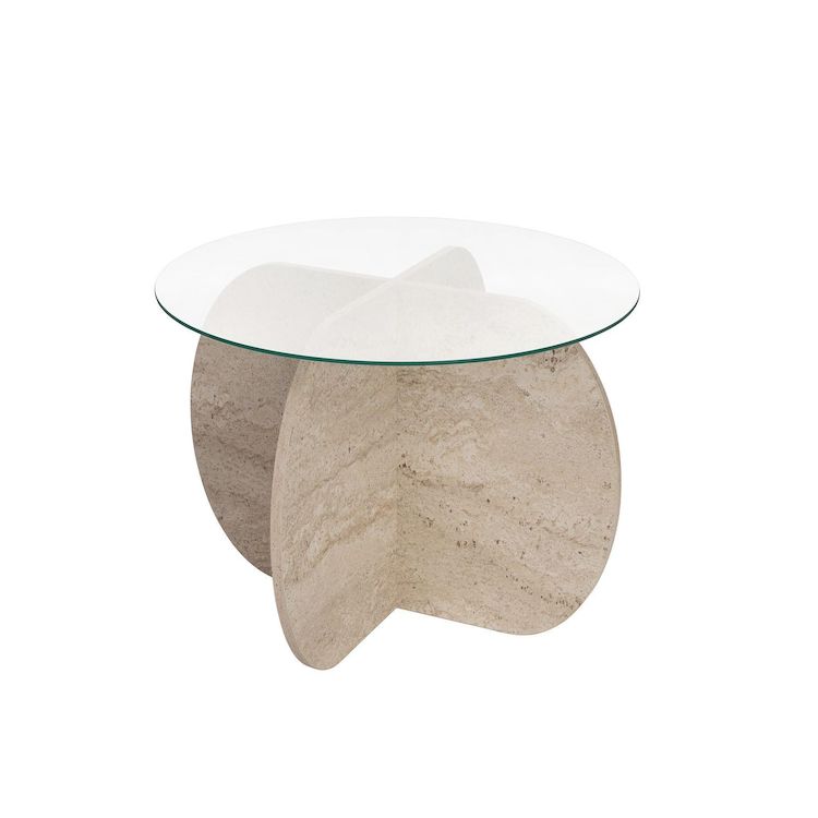 Table basse en bois Aeris - 75 x 75 x 35 cm - TravertinTransparent