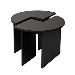 Table basse moderne noire, Ø90 cm, Hauteur : 41 cm. Panneaux de particules 100 % mélaminés, épaisseur : 18 mm. Design épuré et uni, idéal pour les salons contemporains et les espaces élégants..