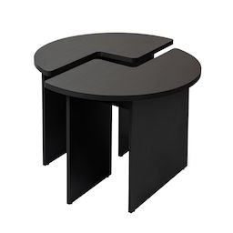Table basse en bois Moira Donnez du caractère à votre décoration avec ce table basse pensé pour allier style et praticité. Son design soigné et ses finitions élégantes s'intègrent facilement dans une ambiance moderne, naturelle ou plus altique.Points fortsLook tendance pour sublimer votre intérieurFormat adapté aux espaces du quotidienIdéal pour le salon, la chambre ou l'entréeCaractéristiquesMatière : boisDimensions : 90 x 90 x 41 cmColoris : Bois NoirAstuce déco : associez-le à des matières naturelles (bois, textile, métal) pour un rendu harmonieux et chaleureux. Un choix parfait pour apporter une touche élégante sans surcharger la pièce.Table basse moderne noire, Ø90 cm, Hauteur : 41 cm. Panneaux de particules 100 % mélaminés, épaisseur : 18 mm. Design épuré et uni, idéal pour les salons contemporains et les espaces élégants. .Matière structure: Panneaux de particules