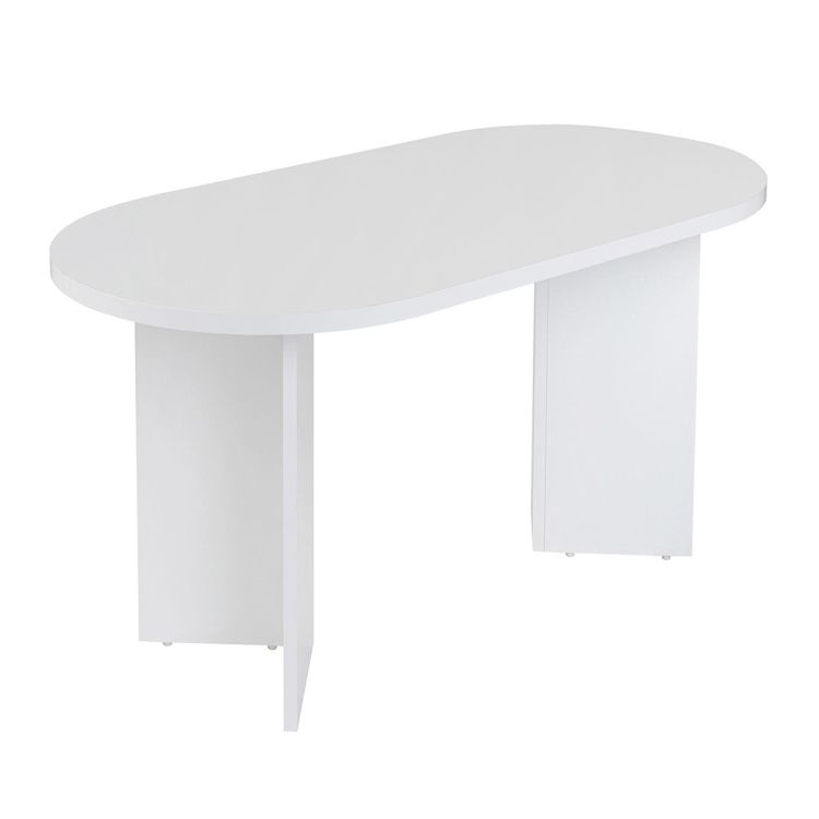 Table basse Sable Blanc Bois 60x119x40cm, Mélamine, Classique, ovale..