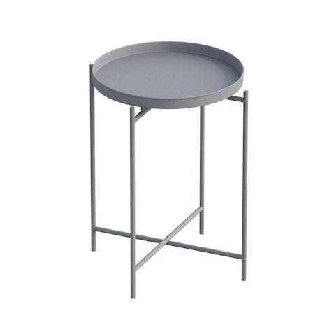 Table basse grise moderne, 46 x 56 x 46 cm, structure 100 % métal, légère (2,02 kg), design épuré et uni, idéale pour les salons contemporains et les espaces élégants. Accessoires non inclus..Table basse en métal Sheby Donnez du caractère à votre décoration avec ce table basse pensé pour allier sty