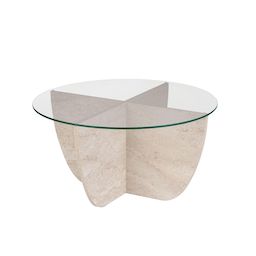 Table basse en verre Liya 90 x 90 x 30 cm - Travertin