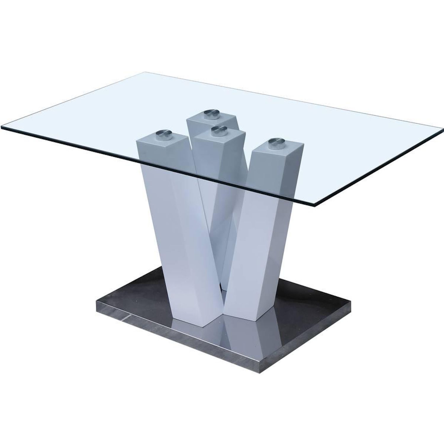 Table basse Gaya rectangulaire - Plateau en verre et structure en bois MDF - 110 x 60 x 40 cm - Piétement original et solide - Blanc laqué.