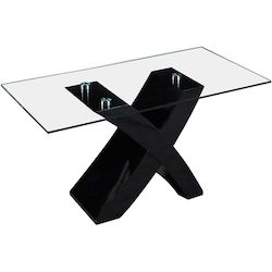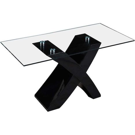 Table basse rectangulaire Tina - Noir - Dimensions : 117 x 62 x 45 cm - Plateau en verre - Structure en MDF .Matières: Verre