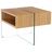 Table basse Venezia - Dimensions : 60 x 60 x 50 cm - MDF et verre trempé - 2 niches de rangement latérales - Coloris bois naturel.