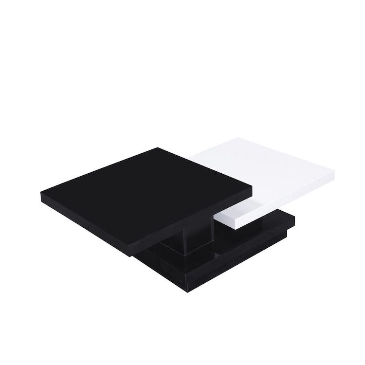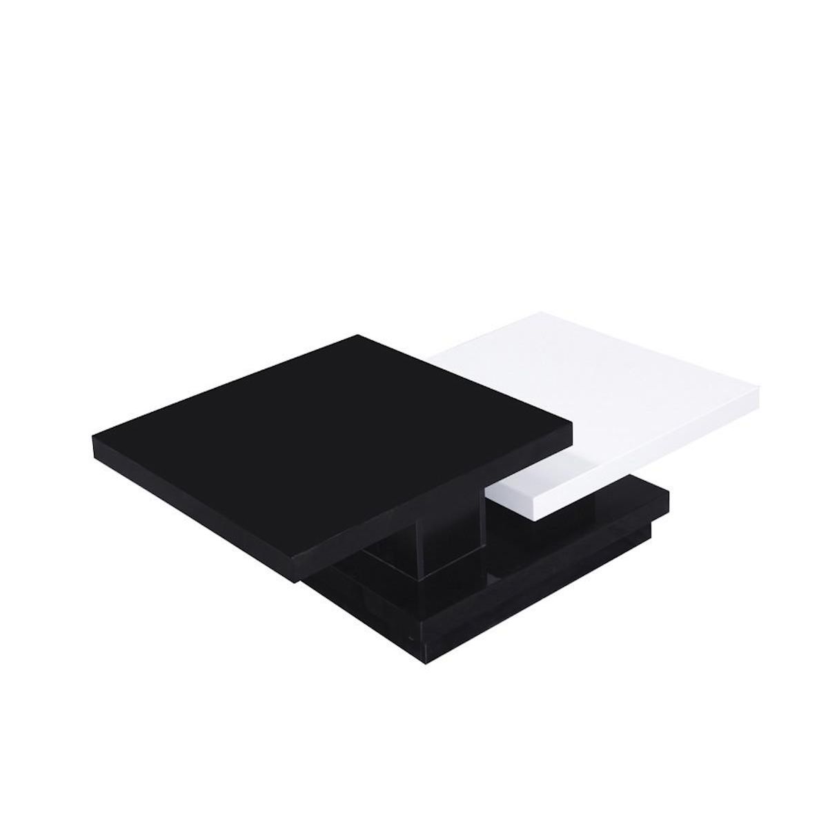 Table basse Zen - 3 plateaux carrés superposés - Noir et blanc - Dimensions : 141,5 x 75 x 30 cm - MDF.