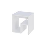 Table d'appoint blanche moderne, 40 x 35 x 40 cm, panneaux de particules 100 % mélaminés, épaisseur 18 mm. Design élégant et fonctionnel, idéal pour le salon ou la chambre. Montage facile. Charge maximale : 10 kg..