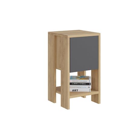 Table de chevet moderne avec tiroir pivotant, chêne et anthracite, 30 x 55 x 30 cm. Panneaux de particules 100 % mélaminés, 18 mm d'épaisseur. Design scandinave pour un rangement et une décoration élégants dans la chambre..