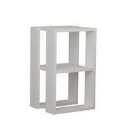 Table de chevet blanche moderne, design à 2 niveaux, 30 x 55 x 30 cm, panneaux de particules 100 % mélaminés, épaisseur : 18 mm. Solution de rangement élégante et fonctionnelle pour la chambre et le salon..