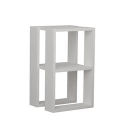 Table de chevet blanche moderne, design à 2 niveaux, 30 x 55 x 30 cm, panneaux de particules 100 % mélaminés, épaisseur : 18 mm. Solution de rangement élégante et fonctionnelle pour la chambre et le salon..Table de chevet en bois Lonie Donnez du caractère à votre décoration avec ce table de chevet