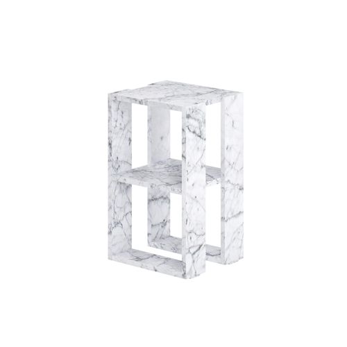 Table de chevet moderne à 2 niveaux, couleur marbre de Carrare, 30 x 55 x 30 cm, panneaux de particules mélaminés, épaisseur : 18 mm. Élégante et fonctionnelle, elle est idéale pour la chambre ou le salon..Table de chevet en bois Lonie Donnez du caractère à votre décoration avec ce table de chevet
