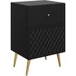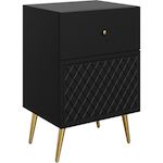 Commode de chevet Temerra 50 x 42 x 57 cm - Noir stratifié - 2 tiroirs - 4 pieds en métal doré.