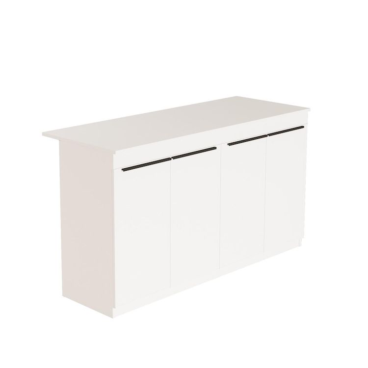 Ilot de cuisine - Dimensions : 160 x 60 x 90 cm - Bois - Epaisseur 18 mm - 4 étagères - 4 portes - Blanc.