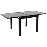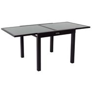 Descriptif : Table de jardin extensible Porto 8 - Aluminium et verre - 90/180 x 90 x 75 cm - Légère et au design moderne - Coloris noir.