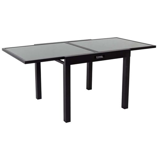 En savoir +Table de jardin extensible Porto 8 - Aluminium et verre - 90/180 x 90 x 75 cm - Légère et au design moderne - Coloris noir.