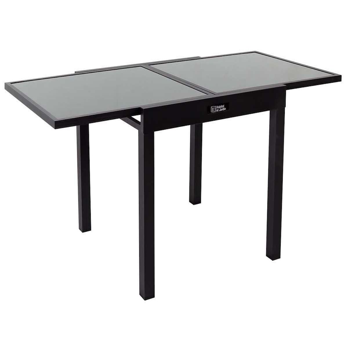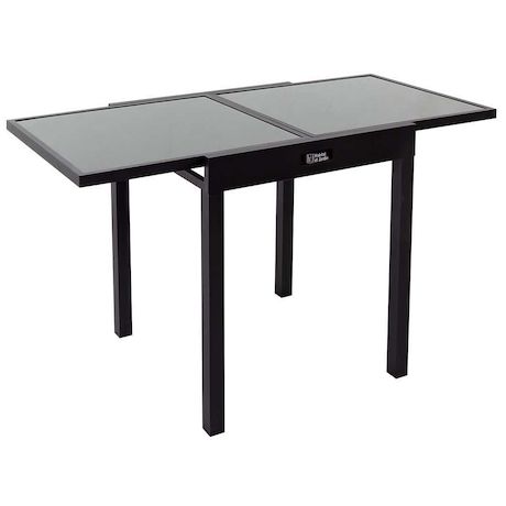 Table de jardin extensible Porto 8 Cette table extensible de jardin mêlant sobriété et modernité afin d'ajouter une touche d'élégance à l'espace de votre choix (jardin, terrasse, véranda).Sa conception et sa taille le rendent simple, multifonctionnel et facile à nettoyer. Utile, facile à installer et donnera une touche différente à votre séjour.Laissez-vous séduire par la praticité de la table de jardin extensible Porte8 autour de laquelle vous réunirez toutes vos convives. Table de jardin extensible Porto 8 - Aluminium et verre - 90/180 x 90 x 75 cm - Légère et au design moderne - Coloris noir .Descriptif: Table de jardin extensible Porto 8 - Aluminium et verre - 90/180 x 90 x 75 cm - Légère et au design moderne - Coloris noir