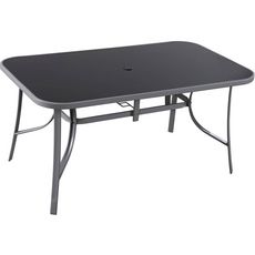 Descriptif : Table de jardin en acier - Plateau en verre - 150 x 90 x 72 cm - Supporte jusqu'à 180 kg - Argenté.